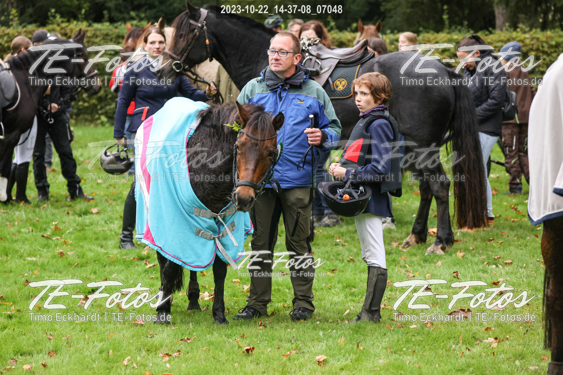• Foto mit kleinem Wasserzeichen, neben Pferd/Reiter