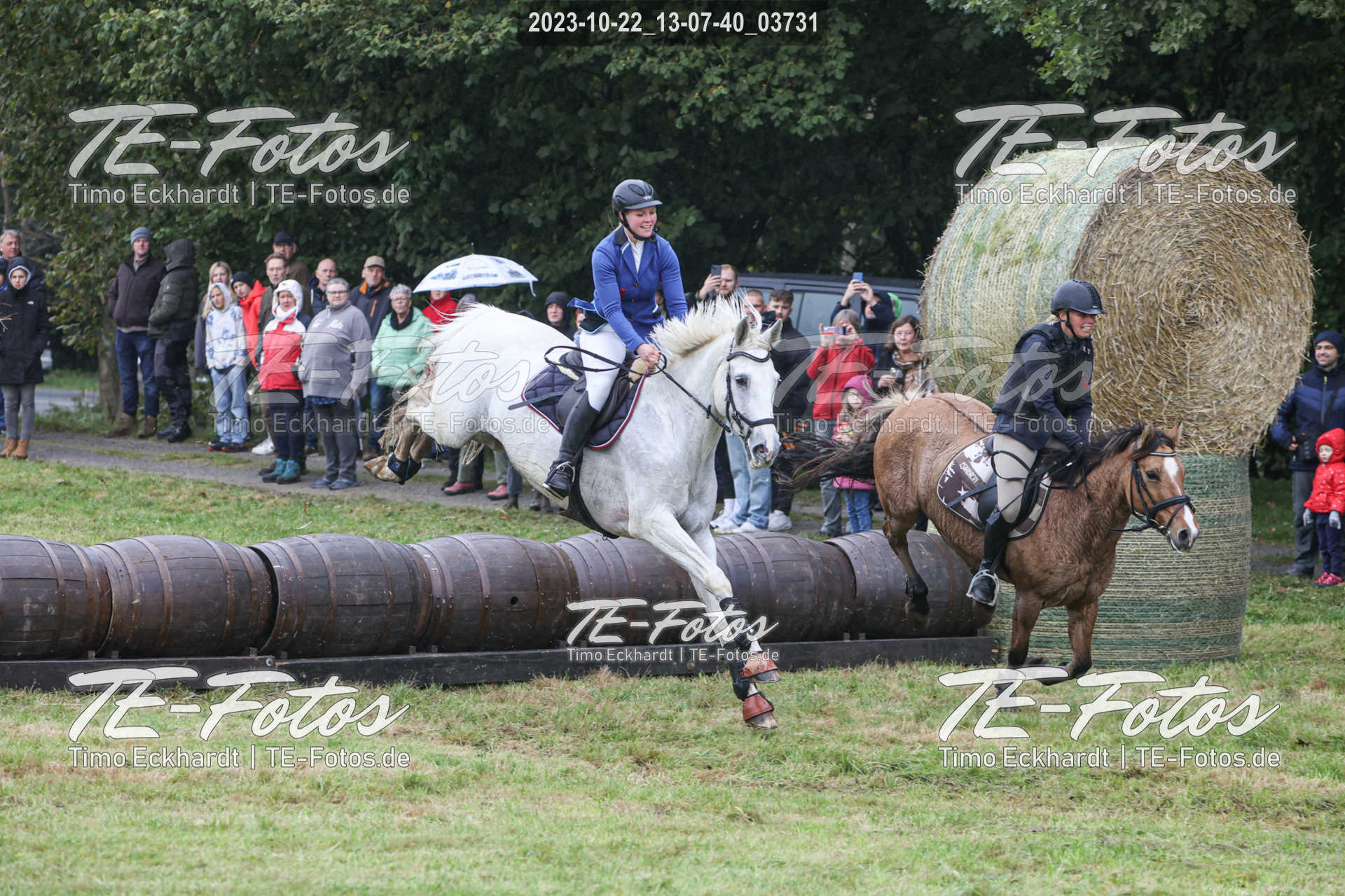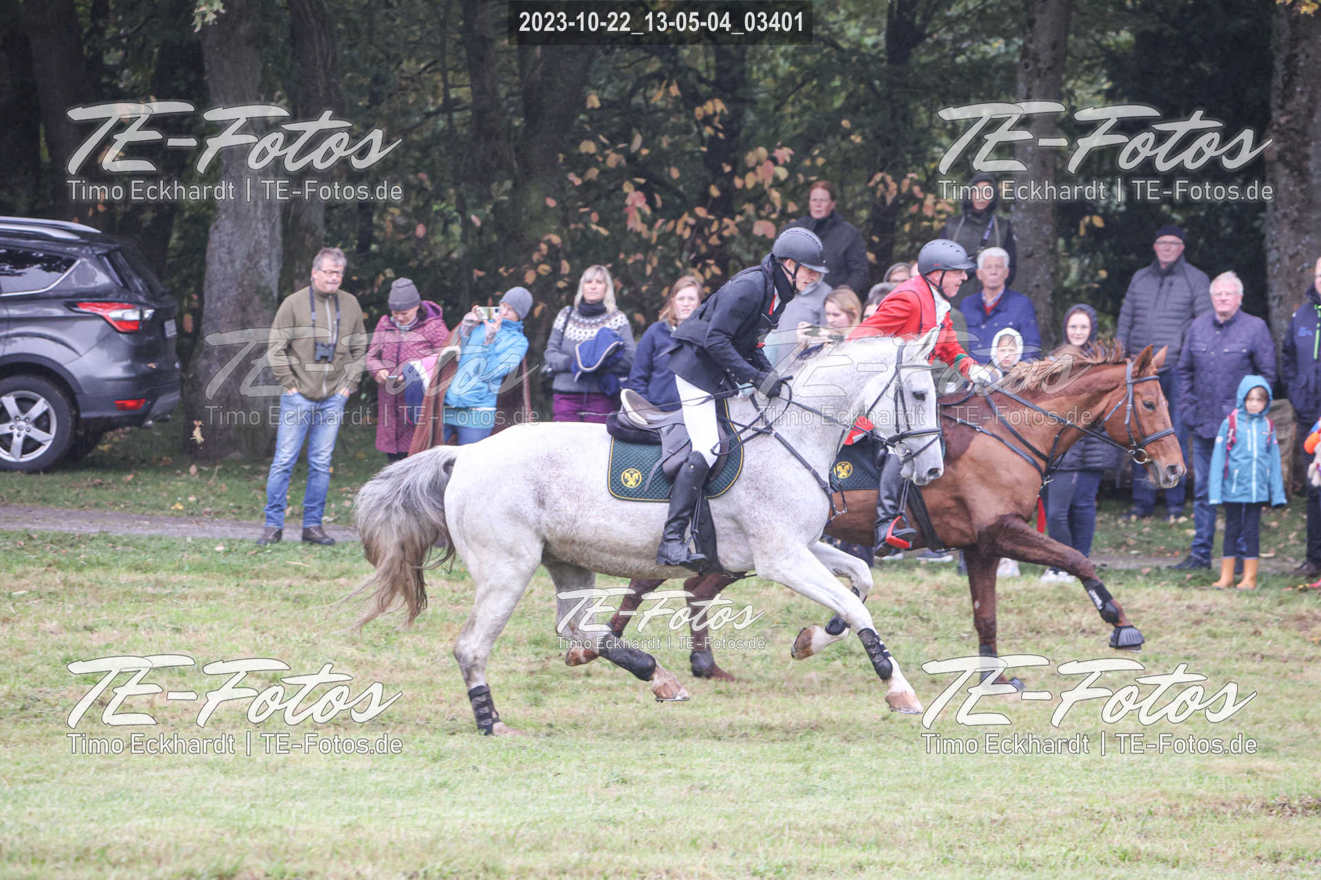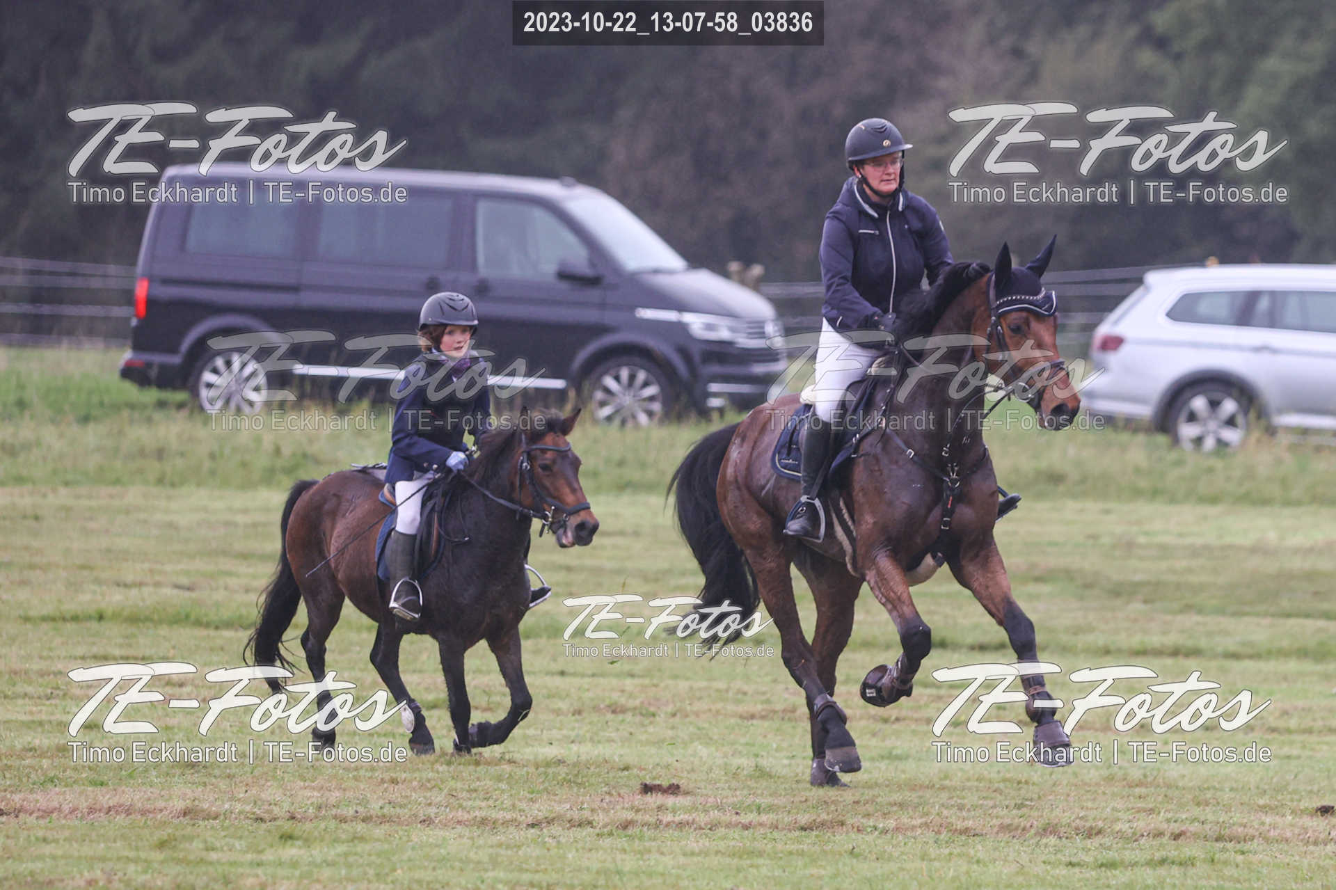 • Foto mit kleinem Wasserzeichen, neben Pferd/Reiter