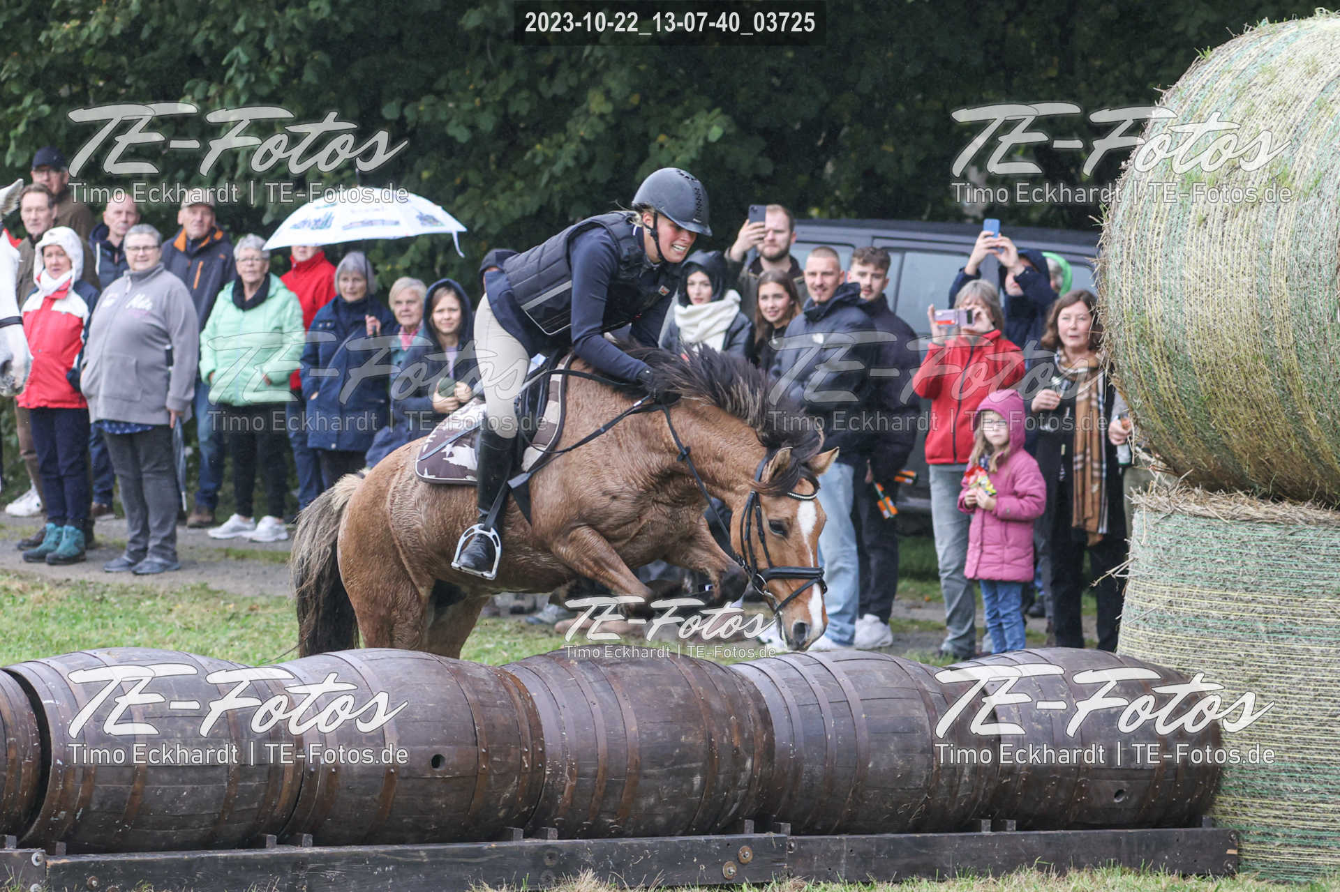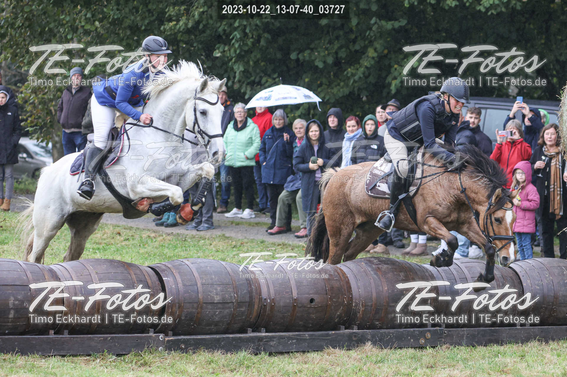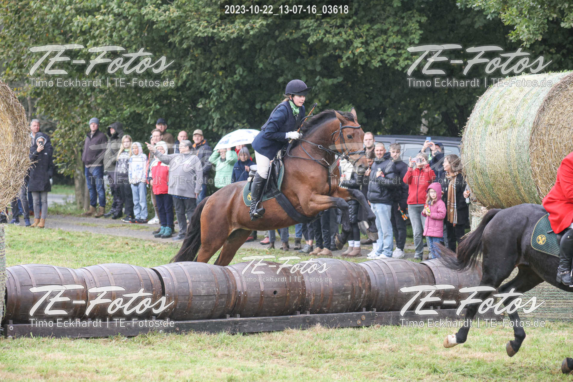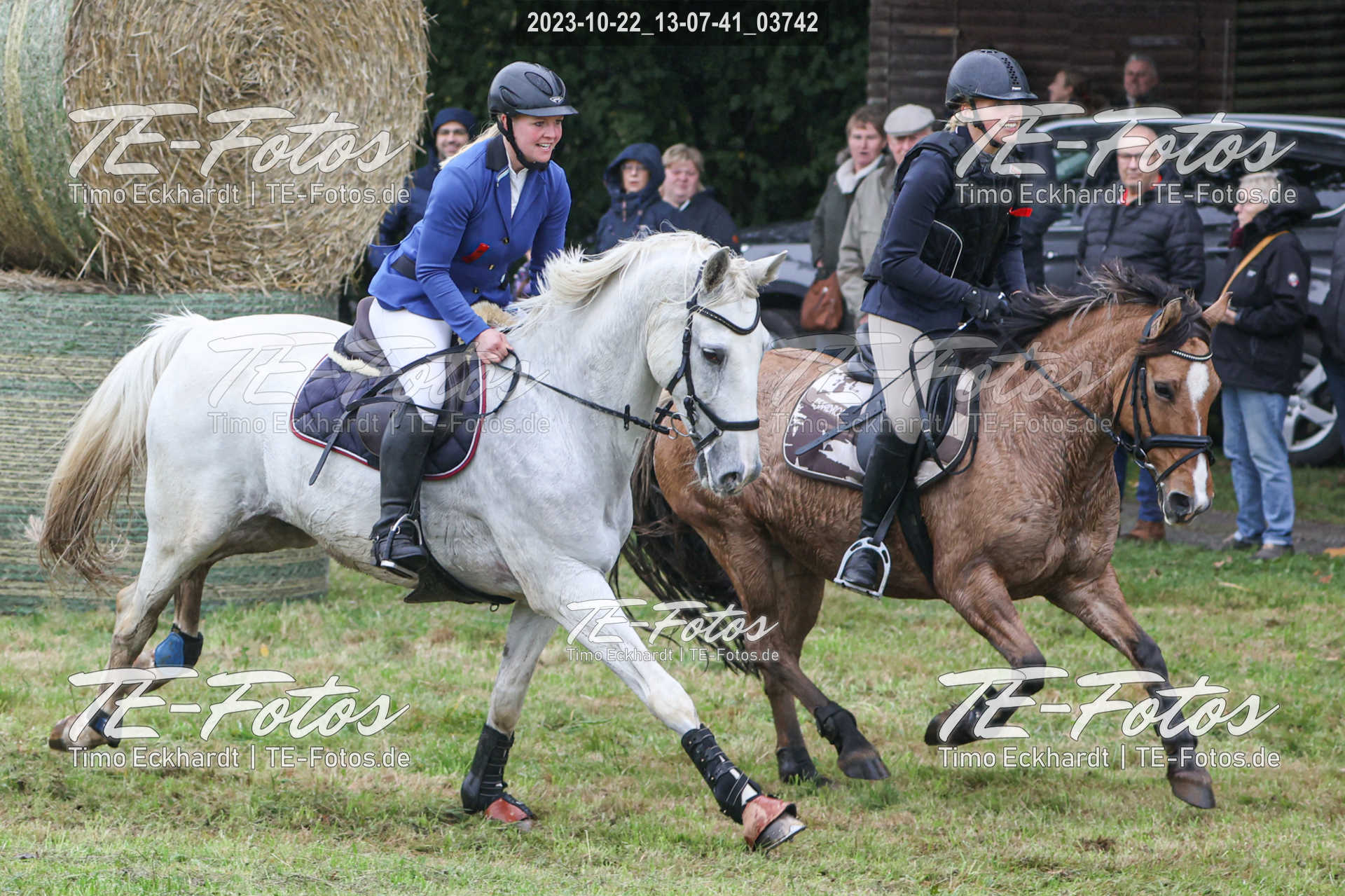 • Foto mit kleinem Wasserzeichen, neben Pferd/Reiter