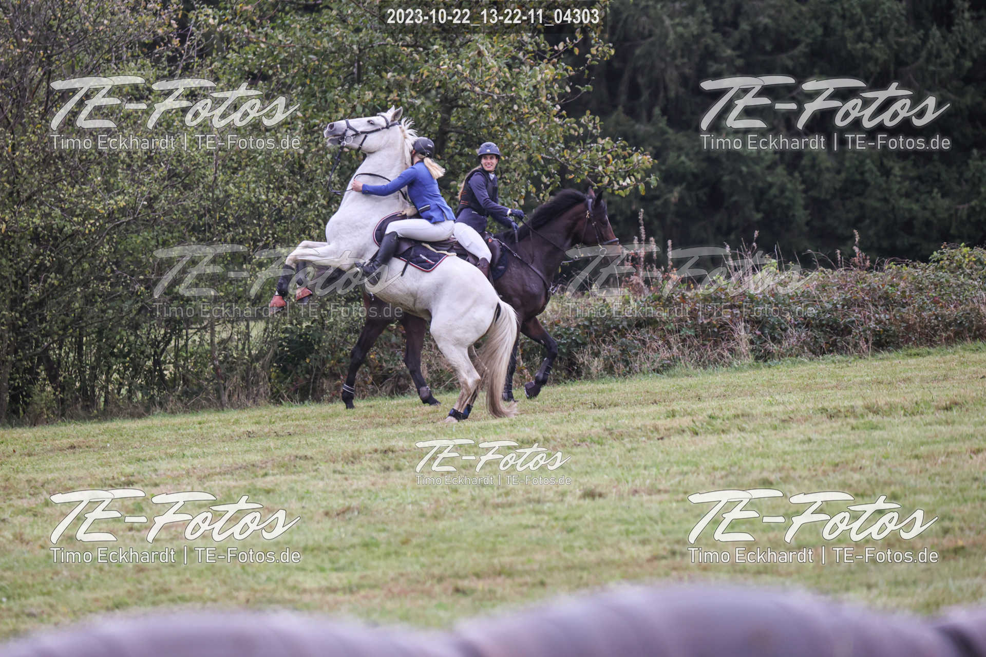 • Foto mit kleinem Wasserzeichen, neben Pferd/Reiter